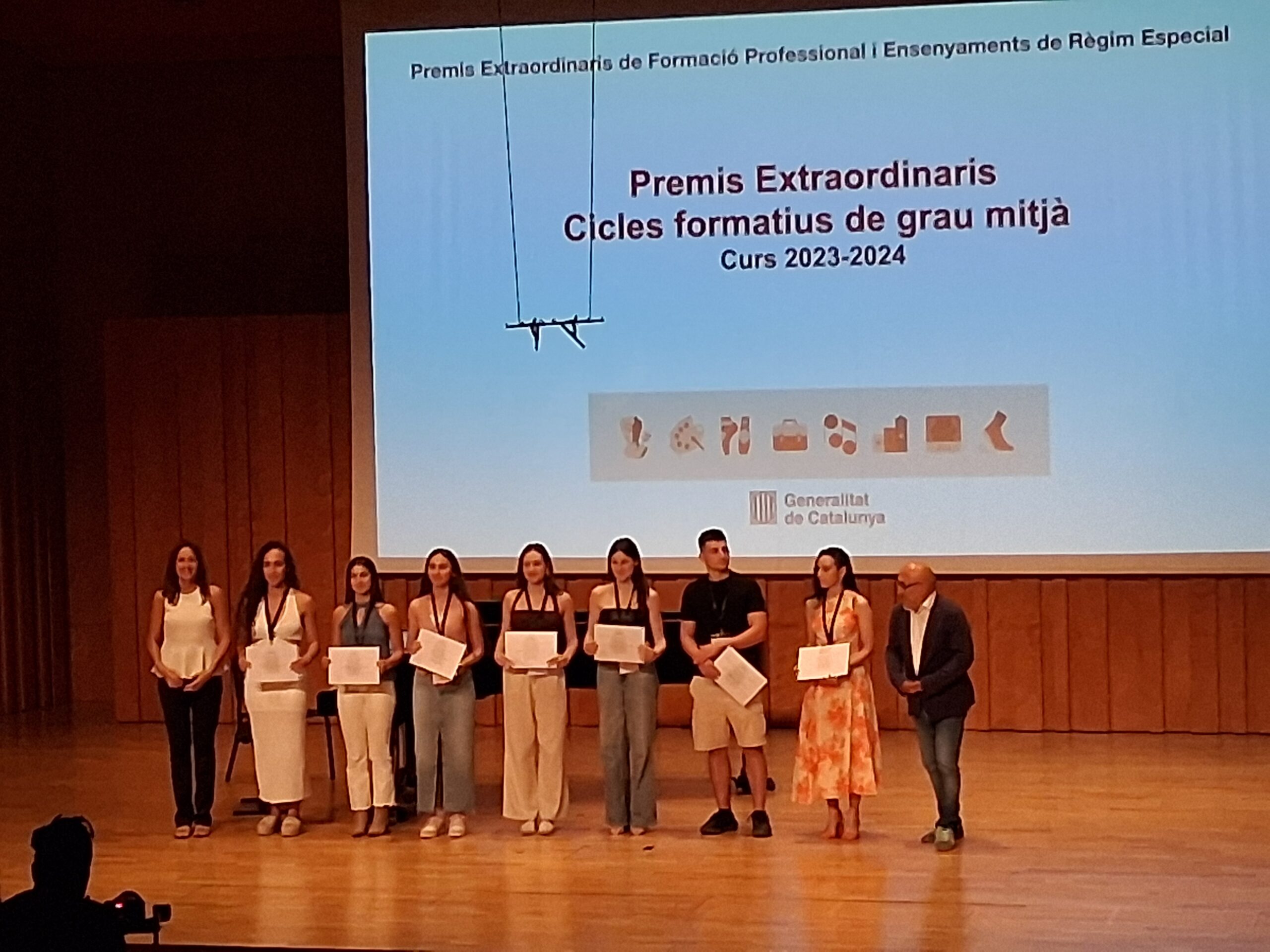 Un total de 69 alumnes han rebut aquest 10 de juny els premis extraordinaris de cicles formatius de grau mitjà i superior de formació professional, dels programes de formació i inserció i d’ensenyaments de règim especial com els artístics i esportius. L’entrega s’ha dut a terme en un acte al Conservatori del Liceu, encapçalat per la consellera d’Educació i Formació Professional, Esther Niubó, que ha entregat les distincions juntament amb el secretari de Formació Professional del Departament, Francesc Roca. Els premis són un reconeixement a l’alumnat que, gràcies a l’esforç, el rigor i la dedicació, ha aconseguit uns resultats acadèmics excel·lents.