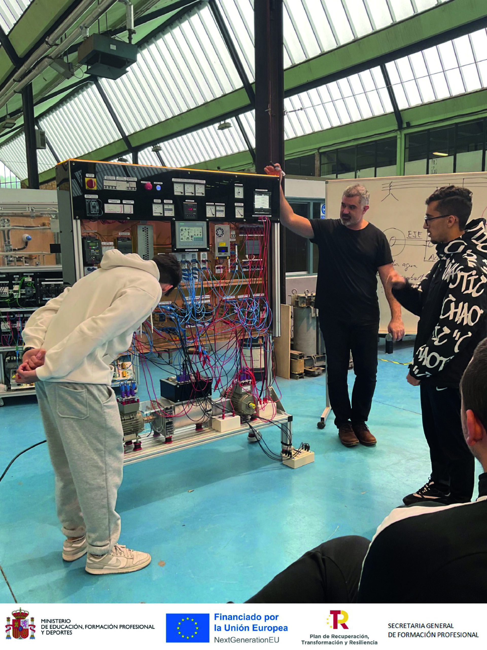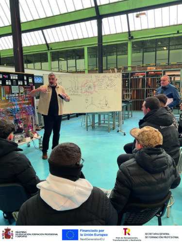 L’activitat s’emmarca dins del projecte d’innovació Gen4EDU: Simulador de Generación Eléctrica Síncrona para la FP. Aquesta iniciativa és fruit de la col·laboració estratègica entre el nostre institut, el CF Somorrostro de Muskiz i l’empresa especialitzada Aldabe Sistemas. Gràcies a aquesta aliança, sumem coneixement, experiència tècnica i capacitat d’innovació per millorar les competències professionals dels nostres estudiants.